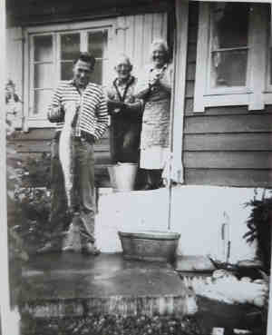 • Bilde, Ca. 1959, Io Meland Alver. Far, Johannes (oldefar) og Berthine (oldemor) utenfor Loftly.