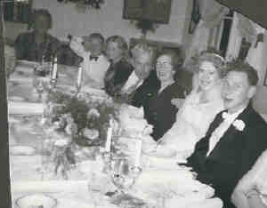 • Bryllup, 1958. Bryllupsfest, fra venstre farmor Gerd, onkel Jan, tante Kari, farfar Leiv, mormor Elida, mor og far.